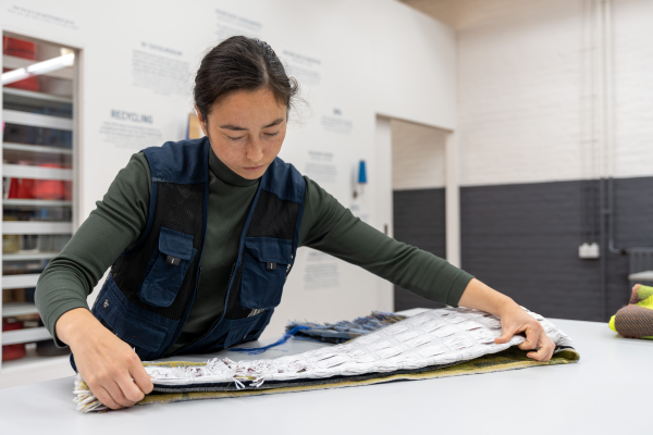 Ik werk momenteel samen met EE Labels in hun Talent Development Programma. Samen ontwikkelen we een collectie tactiele textielen die de kwaliteiten van jacquardweven, mogelijk gemaakt in hun weverij in Heeze, in de schijnwerpers zetten.